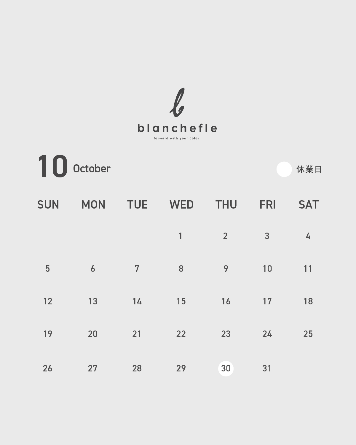 10月の定休日をご案内致します。